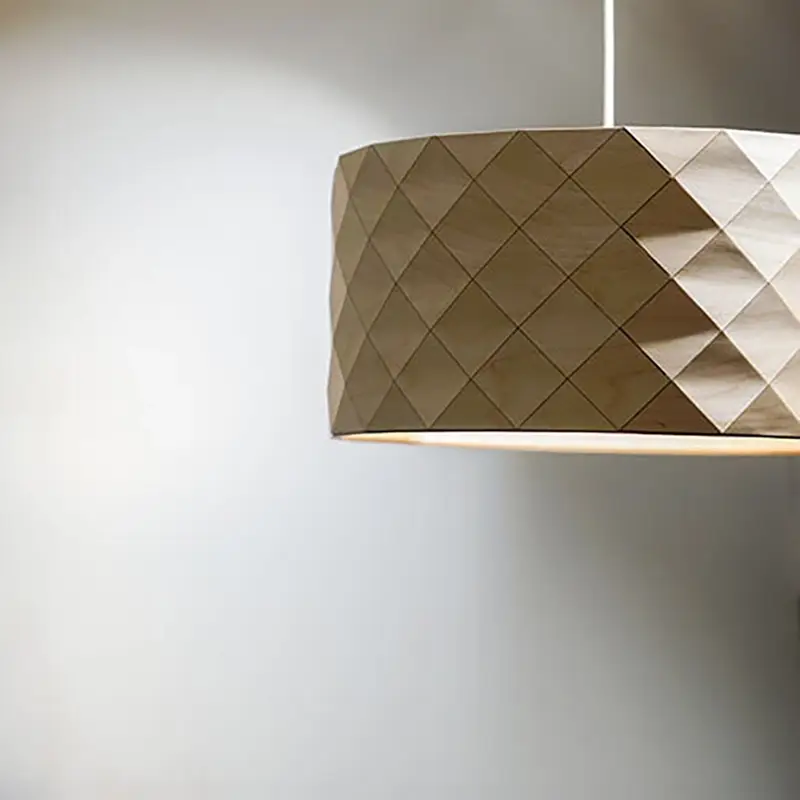 The lampshade does not allow light to pass through its sides, ensuring that the wood’s surface pattern is beautifully visible at all times.